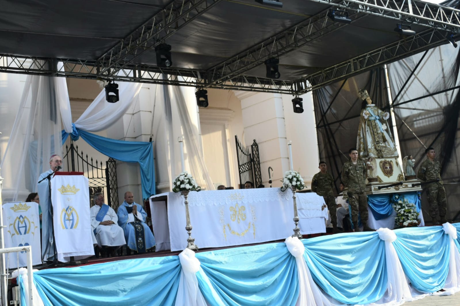 Hace exactamente doce años, y un día como hoy, hemos colocado el bastón de mando en nuestra imagen de la Merced. Entonces decíamos que: “Restituir el bastón de mando en las manos de Nuestra Señora de la Merced, es declararla conductora de un pueblo que busca su libertad, y reconocerla como maestra que nos enseña a conciliar el amor a Dios y a la Patria, a ejercer el poder como servicio, y a brindarse por entero a la construcción de una patria para todos. En eso consiste el bastón que tiene en sus manos.