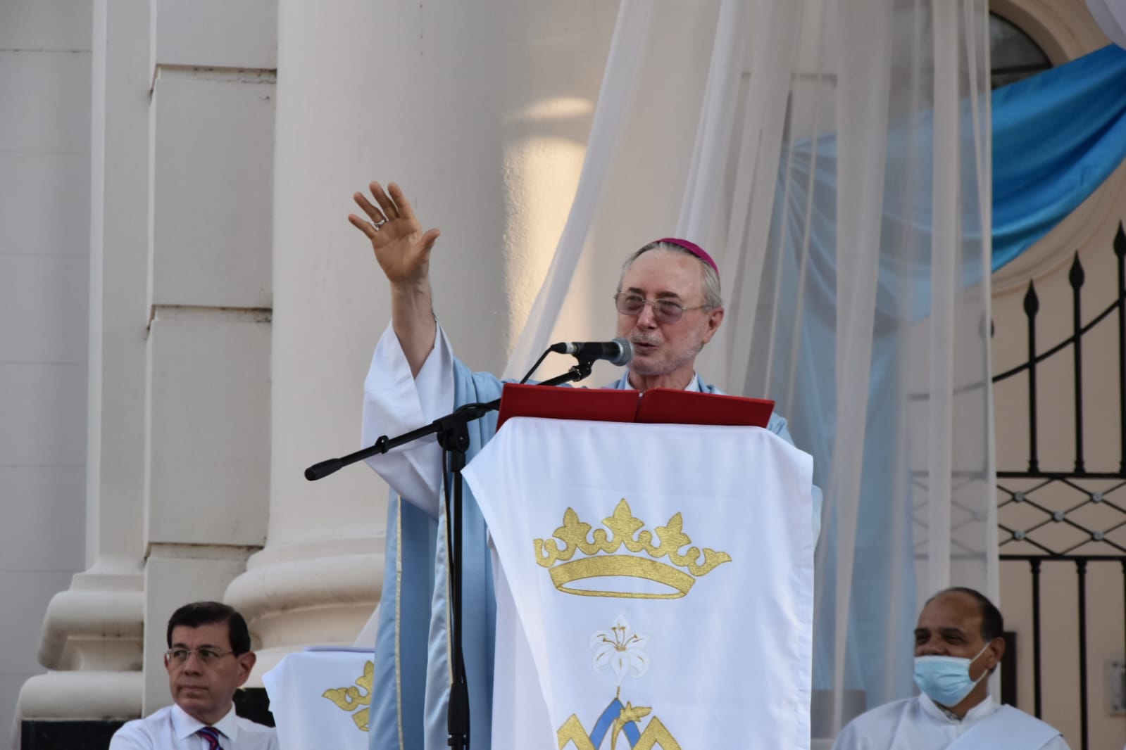 La lógica de ese bastón no es la guerra, sino la paz; no es la conquista, sino la fraternidad, que se construyen en el espíritu de la “merced”, de darse gratuitamente, de ofrecerse en sacrificio para que el otro viva. Esta es la “irracionalidad” del amor cristiano: a la irracionalidad de la violencia, se propone la irracionalidad de amor. Esta la “merced” que la Virgen ofrece con sus brazos extendidos y sus manos abiertas. Abramos nuestros corazones y recibamos agradecidos esa “merced”, porque en ella está todo el potencial que necesitamos para reconstruir nuestros vínculos en la familia, promover la amistad social y un sentido más profundo de fraternidad entre todos. Porque no hay convivencia humana que pueda perdurar, sino está fundada en el amor oblativo, en la entrega desinteresada, en el riesgo de comprometer la propia vida en favor de otros.
