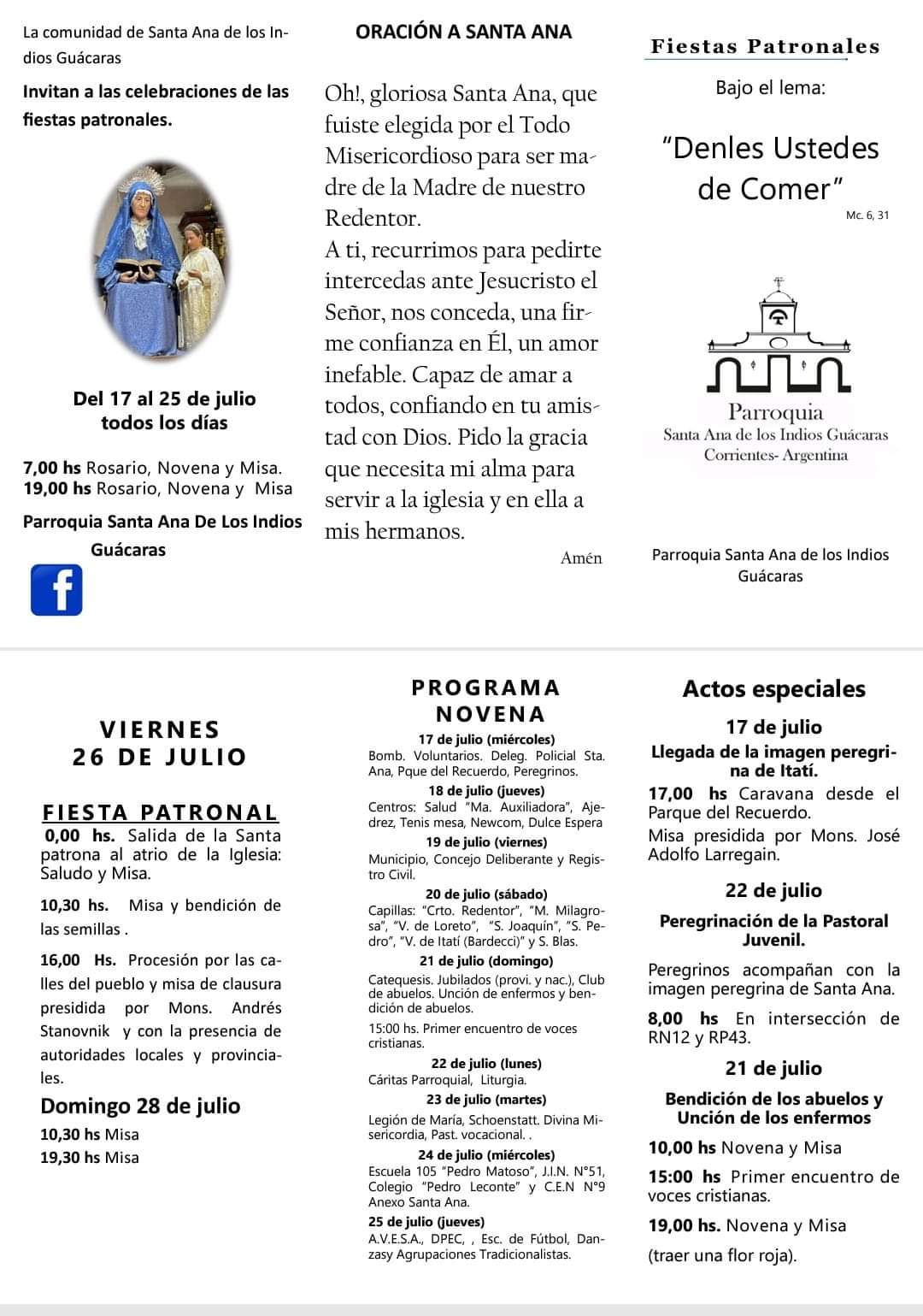 La Iglesia celebra mañana a Santa Ana y San Joaquín. En el pueblo que lleva el nombre de la madre de la Virgen María, preparan la fiesta en su honor. “Denles ustedes de comer” es el lema que ilumina estos festejos patronales. Los actos centrales serán presididos por el Arzobispo.
