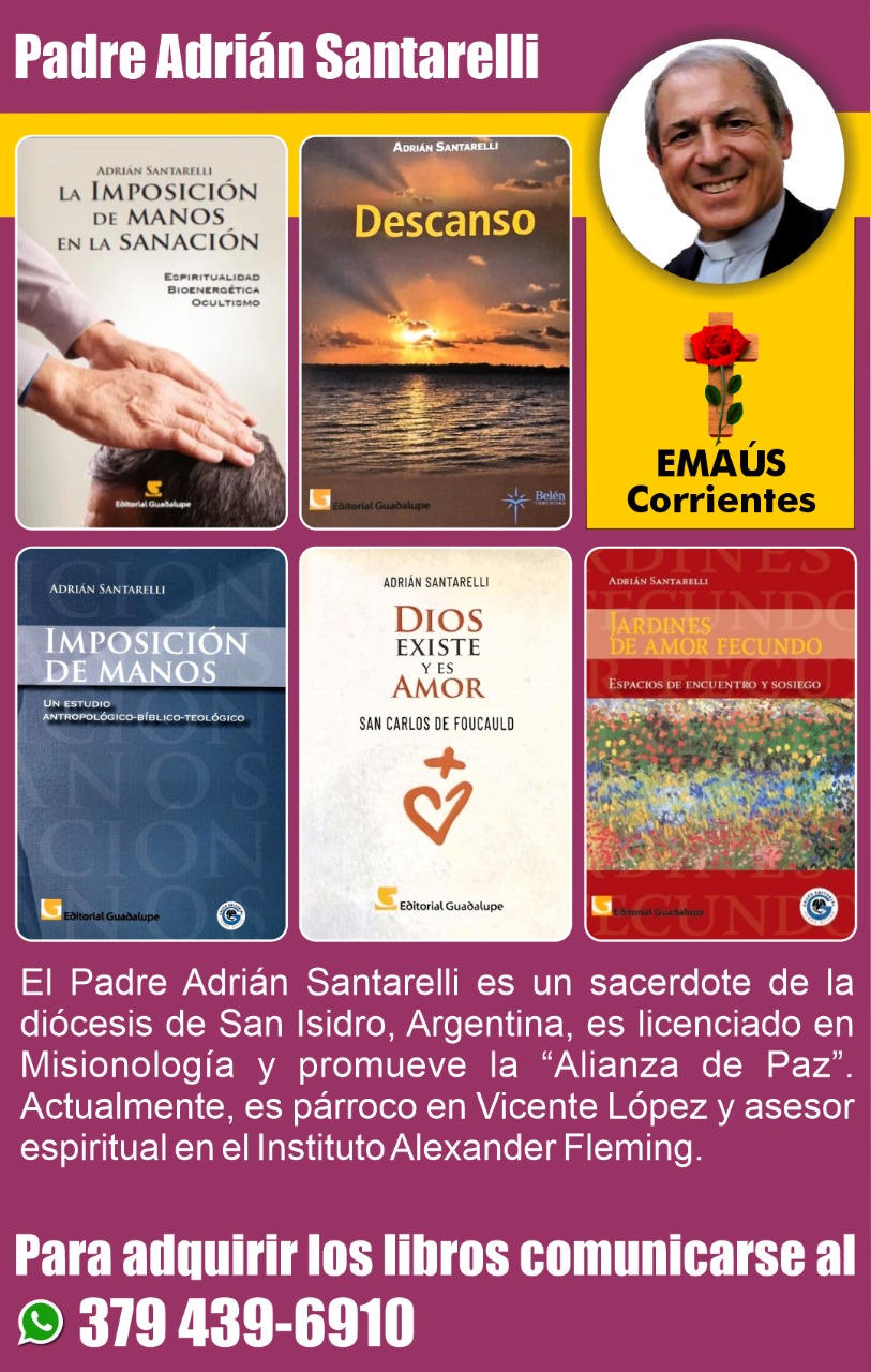El miércoles estará en la Arquidiócesis el padre Adrián Santarelli, sacerdote de la diócesis de San Isidro, invitado por el grupo Emaús. Celebrará la Santa Misa a las 19.30 en la parroquia San Francisco Solano donde hará imposición de las manos.