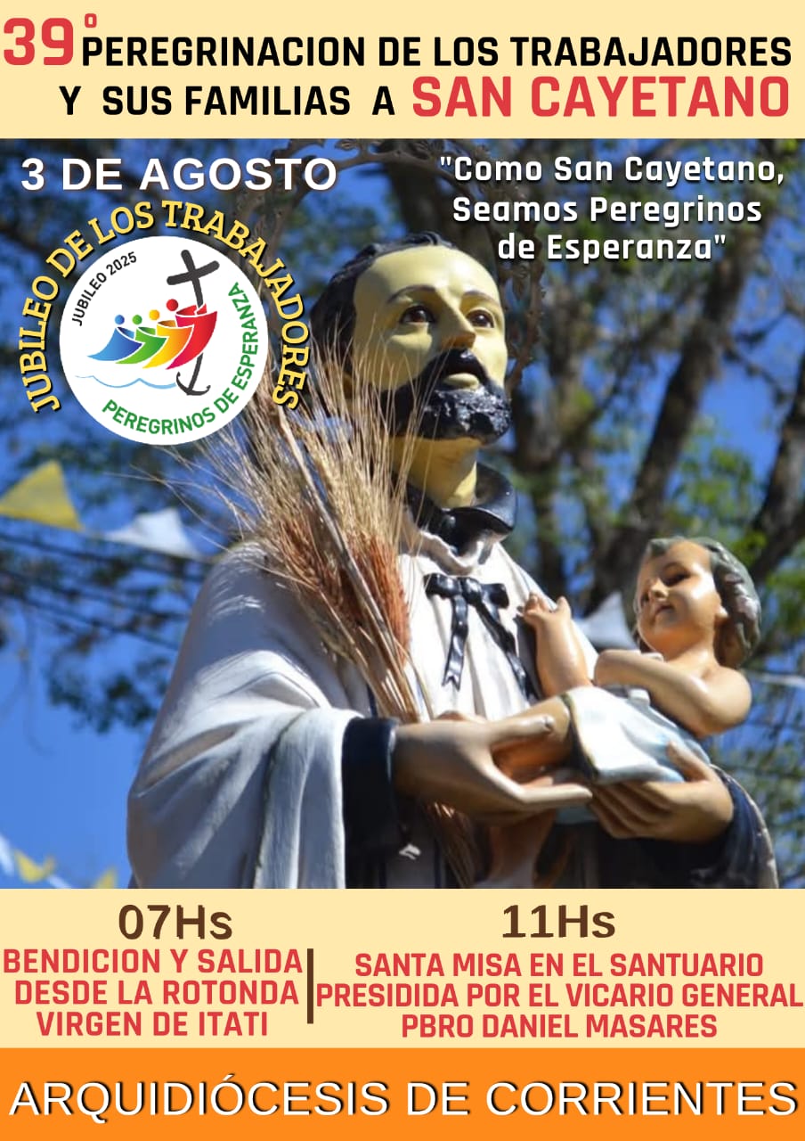 Con el lema “Como San Cayetano, seamos peregrinos de esperanza”, el próximo domingo 3 de agosto se llevará a cabo la 39ª Peregrinación de los trabajadores y sus familias al Santuario de San Cayetano.
