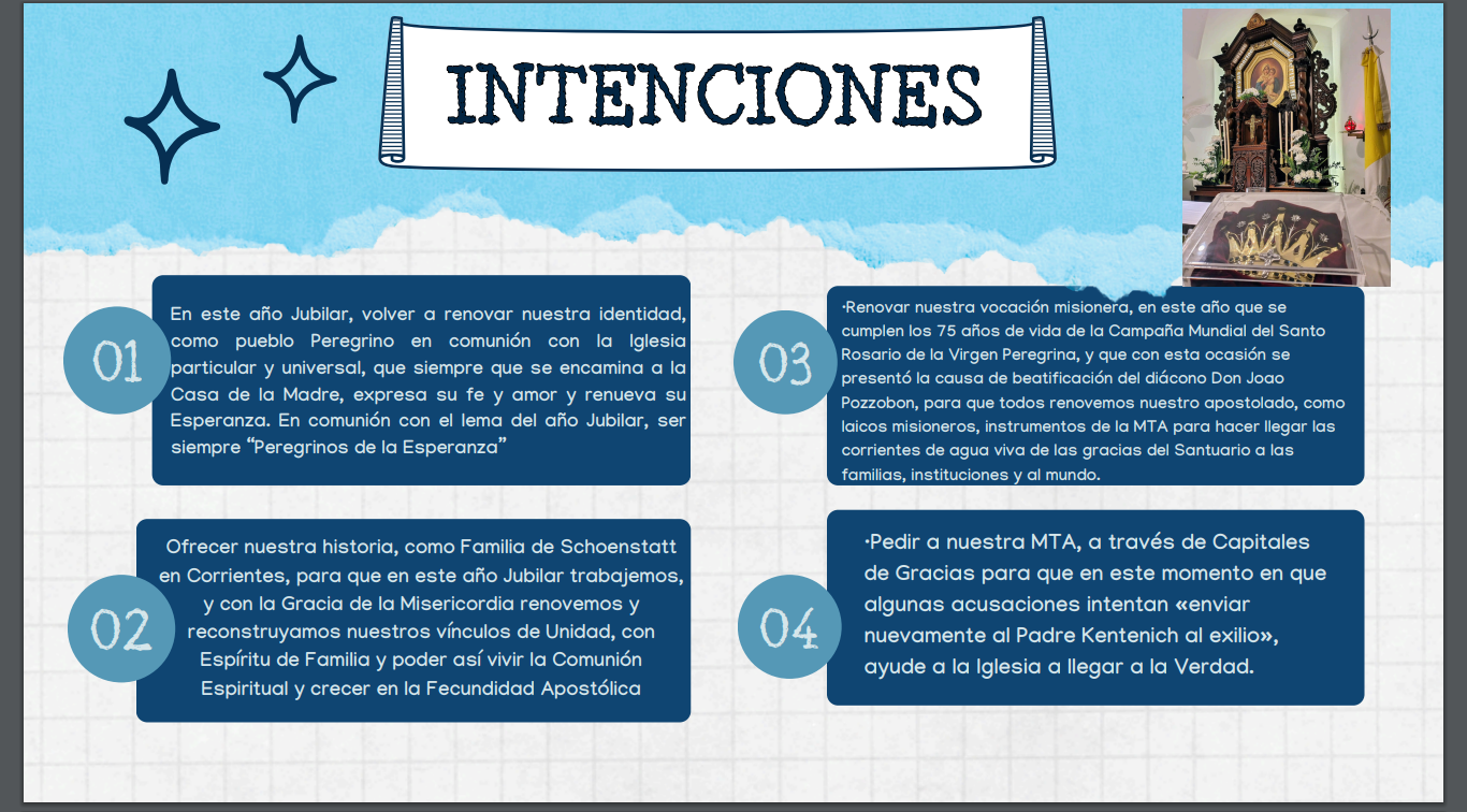 La imagen de la Virgen de Schoenstatt, entronizada el 11 de septiembre de 2022 en el oratorio ubicado en calle Güemes 1411 de la ciudad de Corrientes, será coronada este año. En este marco, los miembros del Movimiento Apostólico de Schoenstatt transitan un tiempo de profunda preparación espiritual.