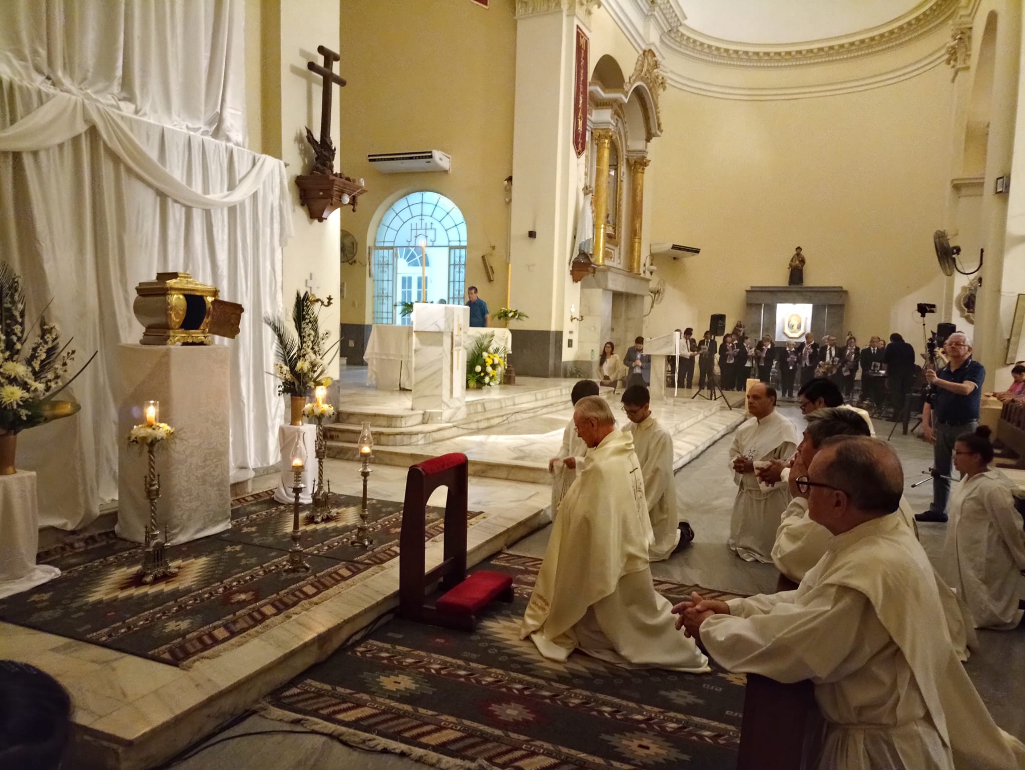 Hoy iniciamos la celebración del Triduo Pascual: Jueves Santo, Viernes Santo y Sábado de Gloria. Para comprender la esencia del misterio pascual que celebramos, es necesario contemplar esos tres días de conjunto como la pasión, muerte y resurrección de Nuestro Señor Jesucristo. La liturgia nos propone desdoblar ese acontecimiento para comprenderlo mejor, profundizarlo más, y vivirlo más intensamente. Hoy, en el “esto es mi cuerpo” y “esta es mi sangre”, debemos mirar, además de la Cena del Señor, también el Viernes Santo y el Sábado de Gloria. Contemplar implicándonos, sintiendo que allí está diseñado el itinerario de nuestra vocación cristiana: llamados a vivir en modo pascual nuestra existencia, dispuestos siempre a morir con Cristo para resucitar con Él.