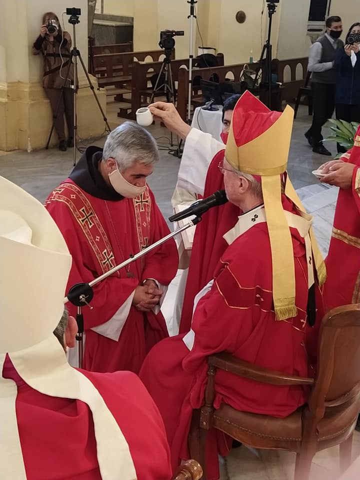 En otro momento de su mensaje, al nuevo Obispo le dijo: “Querido Hermano José Adolfo. Ambos venimos de transitar el camino espiritual en la fraternidad franciscana. Allí aprendimos, movidos por el Espíritu del Señor, la gracia de ser hermanos menores, y durante algunos períodos, hemos desempeñado también el sacrificado y beneficioso ejercicio de ser ministros de los hermanos. Te recomiendo que recuerdes con frecuencia la carta que le escribió Francisco de Asís a un ministro, en la cual le exhorta con estas palabras: “Que no haya hermano alguno en el mundo que haya pecado todo cuanto haya podido pecar, que, después que haya visto tus ojos, no se marche jamás sin tu misericordia”. Y que este espíritu de fraterna compasión invite a todos a acercarse a tu persona sin temor y que ningún fiel laico, sacerdote o persona consagrada, deje de encontrarse con una fraterna y misericordiosa acogida del obispo, padre y hermano. Porque “Nosotros somos testigos”, como explicaste en tu lema episcopal, testigos del poder de Jesús resucitado y vivo en medio de su pueblo, que es quien hace posible la creación de una nueva comunidad fraterna. Vas a recibir una unción de júbilo, como es todo lo que proviene del Espíritu Santo”.